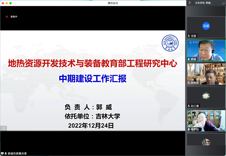 On December 24th 2022, the 2022 Annual Technical Committee Meeting and Mid-term Construction Progress Report Meeting of the Engineering Research Center of Geothermal Resources Development Technology and Equipment of the Ministry of Education was successfully held, which was held by Tencent Conference Online. Academician of the Chinese Academy of Sciences, Director of the Technical Committee of the Center, Professor Lin Xueyu of Jilin University, Academician of the Chinese Academy of Engineering, President of the Department of Geosciences of Jilin University, Professor Lin Jun of Jilin University, Academician of the Chinese Academy of Engineering, and President of China University of Geosciences (Beijing), Professor Sun Youhong, Professor Liu Baolin of China University of Geosciences (Beijing), Professor Liu Sanyi Senior Engineer of China Geological Survey, Professor Liu Yuejin of China Geological Equipment Group Corporation, Professor Li Ningbo of China Geological Survey Bureau’s Research and Promotion Center for Shallow Geothermal Energy, Professor Zhao Sumin of Tianjin Geothermal Survey and Development Design Institute, Professor Wang Guangcai of China University of Geosciences (Beijing), LTD, Professor Huang Jian, Professor Long Wei of Central South University, Professor Tao Shixian of China Geological Survey, Professor Dou Bin of China University of Geosciences (Wuhan), Professor Wang Qinghua of Geothermal Resources Application Research Center of Shanghai Geological and Mining Engineering Survey (Group) Co etc. attended the meeting.
