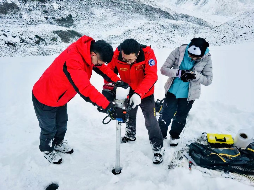 In October 2019, three students and faculty members from the Polar Center went on a field trip to the Urumqi Heyuan 1 Glacier in Xinjiang Uygur Autonomous Region and successfully completed field testing of the hand-crank/gasoline engine shallow auger tool to verify the reliability and alpine suitability of the tool, and collected about 12.4 m of ice cores for research on ice core conductivity, ice core creep characteristics, and microbiology.