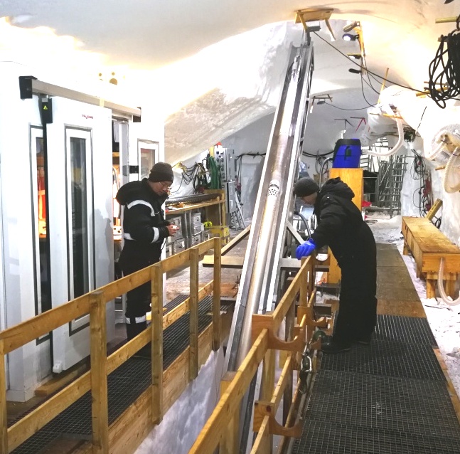 In 2015-2016, PhD student Jialin Hong visited the British Antarctic Survey for exchange and participated in the British Antarctic Science Expedition during this period, and tested the Rapid Access Isotope Drill (RAID) with Dr. R. Mulvaney, the academic leader of the British Antarctic Survey, at Sky Blu Station, Antarctica.