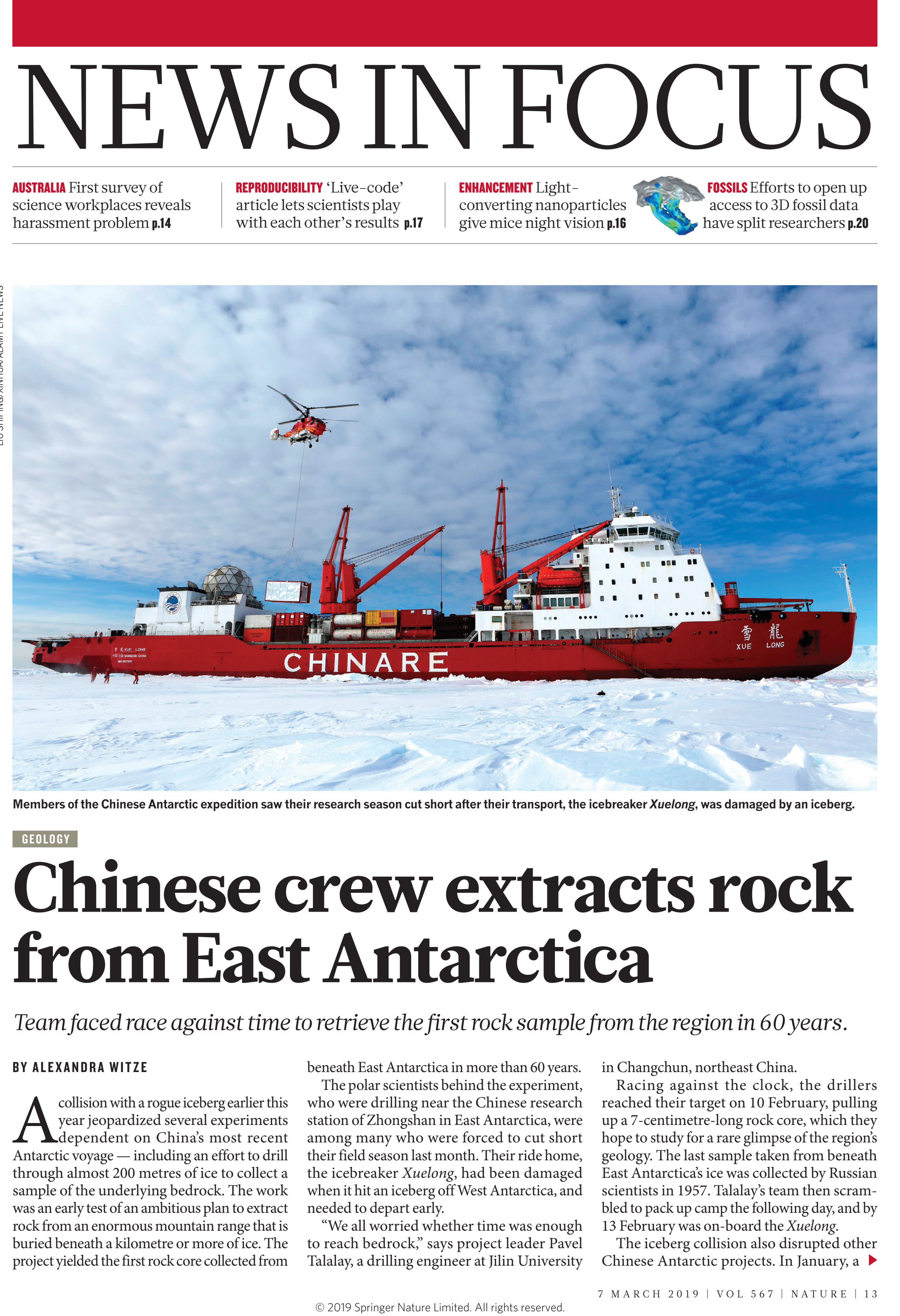 In 2018-2019, the polar deep subglacial bedrock core drilling equipment without drill pipes was applied in the field at the Dalk Glacier in Antarctica, obtaining 198m continuous permeable bottom ice cores and 6cm subglacial bedrock cores, making China the third country in the world to drill subglacial bedrock samples in the Antarctic ice cap. The breakthrough was reported in the famous international academic journal Nature.
