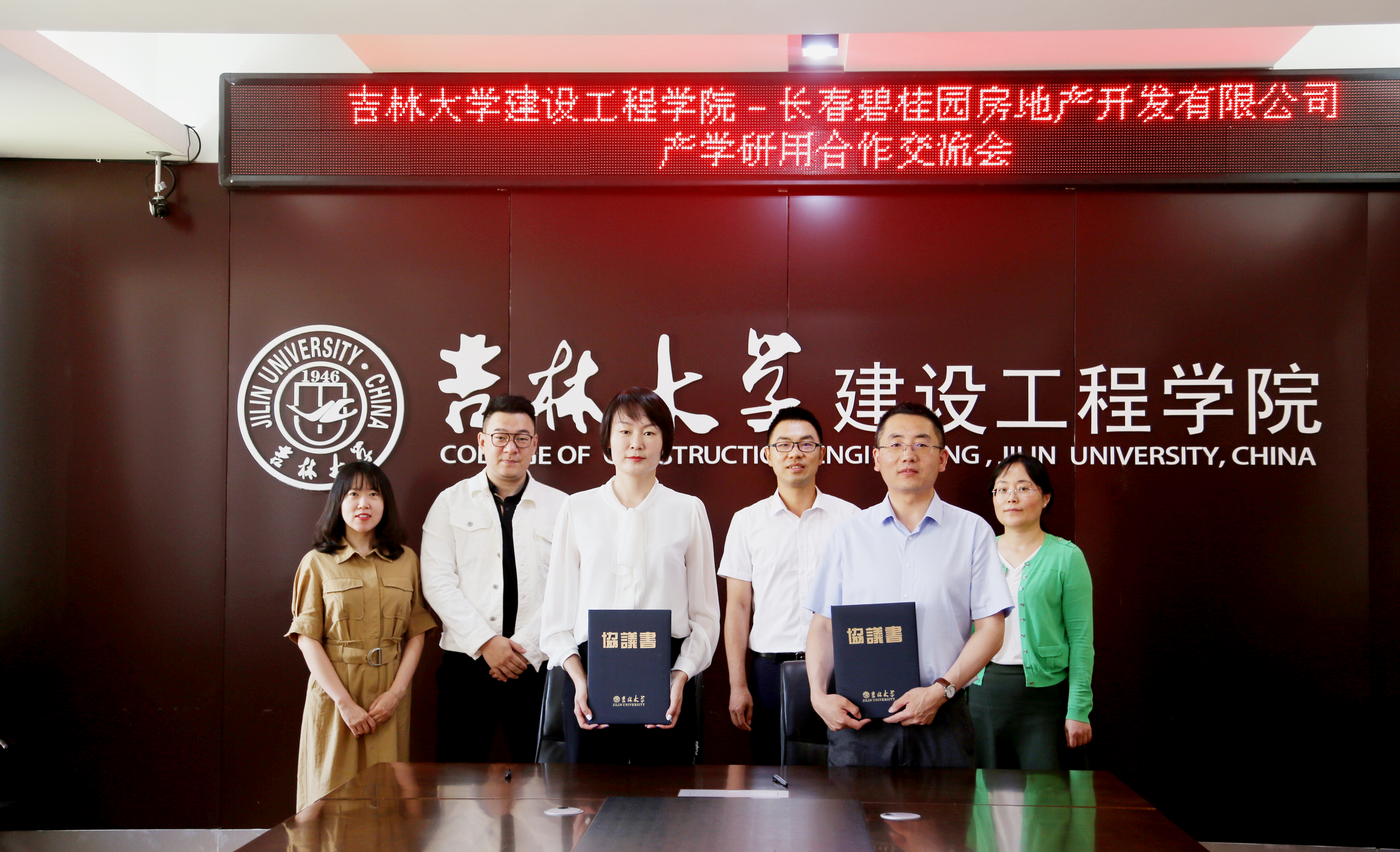 Director Zhu Shan and Deputy Dean Wang Boxin introduced respectively the internship modes for undergraduate and graduate students. Then the two parties had a thorough discussion on the arrangement of the upcoming summer internship. Afterwards, both parties signed the Memorandum of University-Enterprise Cooperation Internship Base. And Deputy Dean Wang Boxin, on behalf of the college, awarded the plaque “Changchun Country Garden Real Estate Development Co., Ltd.-College of Construction Engineering, Jilin University Off-campus Production & Practice Base”.
