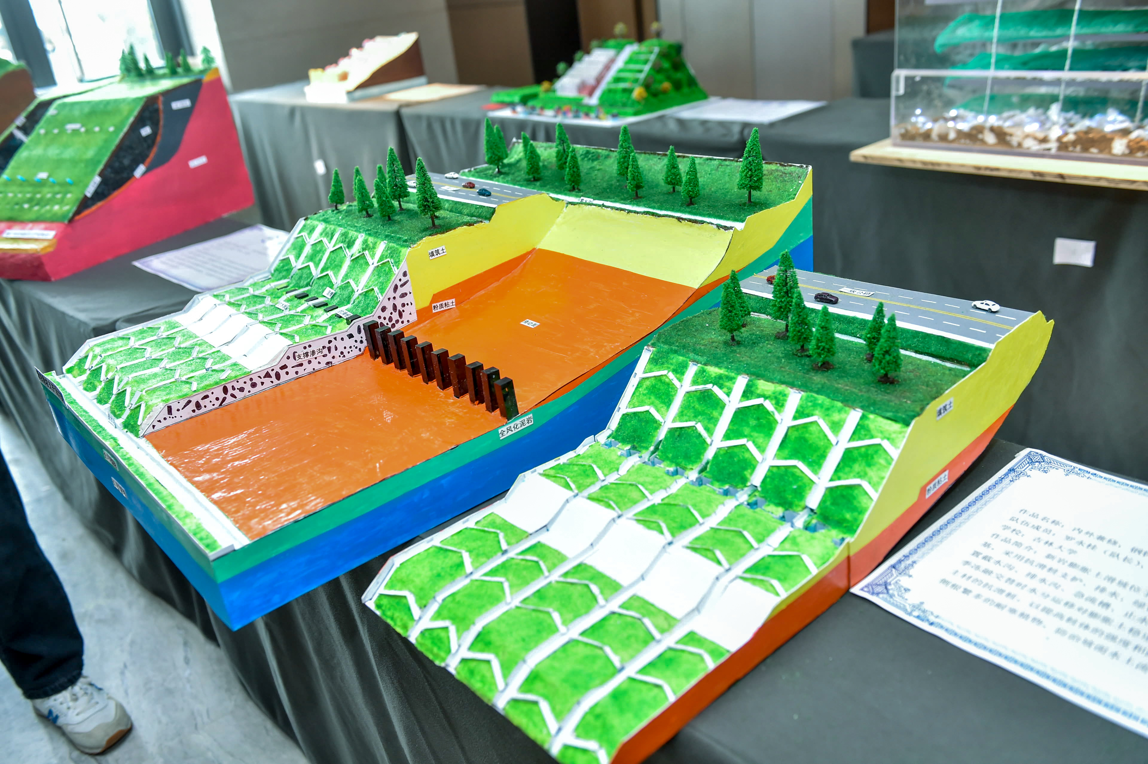 During the preliminary stage, with the support from the CCE, the Department of Geological Engineering carefully organized the pre-tournament selection, training and guidance for the teams. Finally, two teams of our college were selected by the organizing committee to participate the competition, with the works of "To Draw a Rainbow with the Organic Concrete - Ecological Protection Technology for Side Slope of Tailings & Industrial Waste" and "Enhancing Internally and Externally with Steel and Drill Robs - Green Protection Technology against Expansive Soil Landslide". Both of them were selected as finalists with their works.