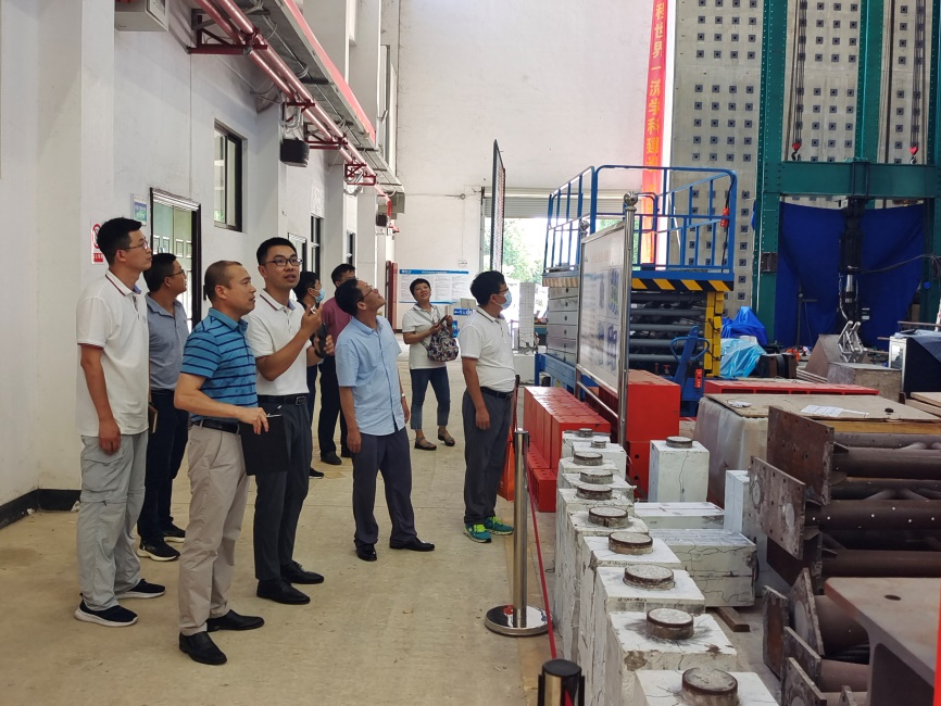 After the exchange and discussion, Vice President Wang Boxin of College of Construction Engineering and his group visited the laboratories and teaching and research buildings of College of Civil Engineering and Construction of Guangxi University.