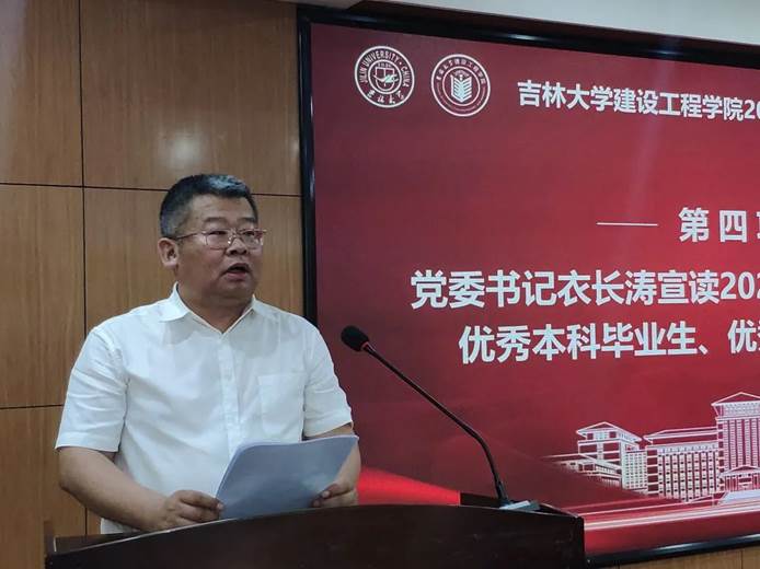 On behalf of the faculty, Zhao Yan sent his sincere wishes to the graduates of the class of 2022. He said that although the epidemic has separated everyone in all directions of the country, the campus of JLU is still full of students’ youthful imprints. In JLU, students have not only made great progress in their studies, but also left a strong mark in the historical picture of the development of the college. We are glad for the growth and progress of the students along the way with the college, and we are proud of the students who will go to the society and take up the noble society responsibility. He also sent a message to the students to set off with professionalism and dedication, to devote themselves to the great career of serving the country with science and technology, to set off with trust and responsibility, to embark on the journey of scientific and technological innovation, to set off with boldness and tenacity, and to open a new chapter of life. We will take up the mission of “A great responsibility will come down from heaven”, and in the name of the Construction and Engineering people of JLU, we will strive to be the first and go forward! Help the Chinese giant ship to cut the waves and create a new miracle that will attract the world’s attention in overcoming difficulties!