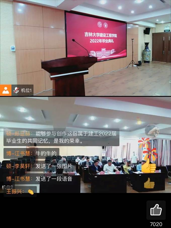 The youth does not disappoint your dream , strive forever like when you are young. At 14:00 on 20th June, 2022, the 2022 Cloud Graduation Ceremony of College of Construction Engineering of Jilin University was held. Yi Changtao, Secretary of the Party Committee of the College of Construction Engineering, Guo Wei, Executive President, Wang Boxin, Cao Pinlu, Zhang Wen and Wu Xinming, Vice Presidents, Wang Qing, Director of the Academic Committee, Chen Baoyi, Director of the Teaching Committee, Hou Chuanbin, Deputy Director of the Oil Shale Industry-University-Research-Use Cooperation and Innovation Base, Talalay, Director of the Polar Center, department chairs and teachers’ representatives attended the offline ceremony, and other teachers of the College, all graduates of the class of 2022 and students’ parents attended online. Deputy Secretary of the Party Committee and Vice President of the College Yan Guodong hosted the meeting.