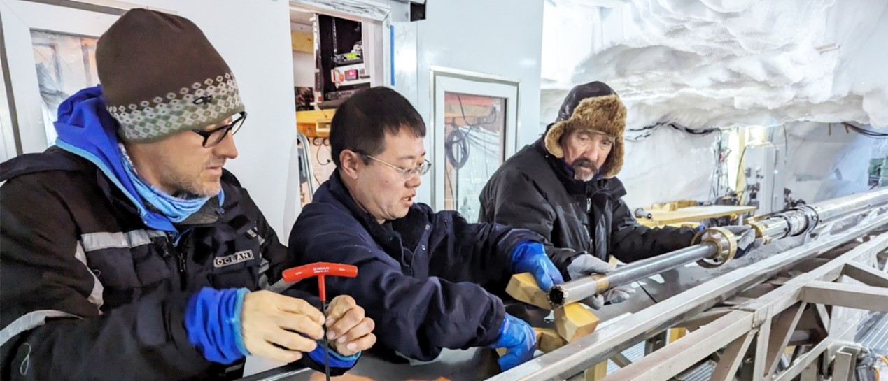 From 10th June to 28th July 2023, Prof. ZHANG Nan from College of Construction Engineering and the Institute of Polar Science and Engineering of Jilin University was invited to participate in the Arctic site visit of the international cooperative expedition to Arctic Greenland "East Greenland Deep Ice Core Project" (EastGRIP) organized by the University of Copenhagen, Denmark, to participate in the implementation of deep ice and under-ice bedrock coring drilling in the Northeast Ice Stream, to conduct ice sample processing and borehole logging and to test the polar ice borehole logging instrument developed by Jilin University, the only Chinese organization invited. The main goal of this expedition work season is to drill through the ice cap and drill samples of basal warm ice, moraine and bedrock. After 30 days of drilling and sampling work, Professor ZHANG Nan and the team successfully drilled through the Greenland ice cap, with a final depth of 2658m, and drilled 2.8m samples of moraine and bedrock at the bottom of the ice cap, successfully completing the field mission, and returned to China on 28th July.