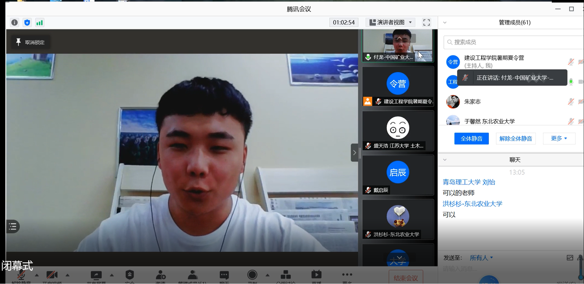 来自中国矿业大学地质工程专业的付龙同学、2007so太阳集团李府昂同学先后对参加此次夏令营的感受进行了发言。