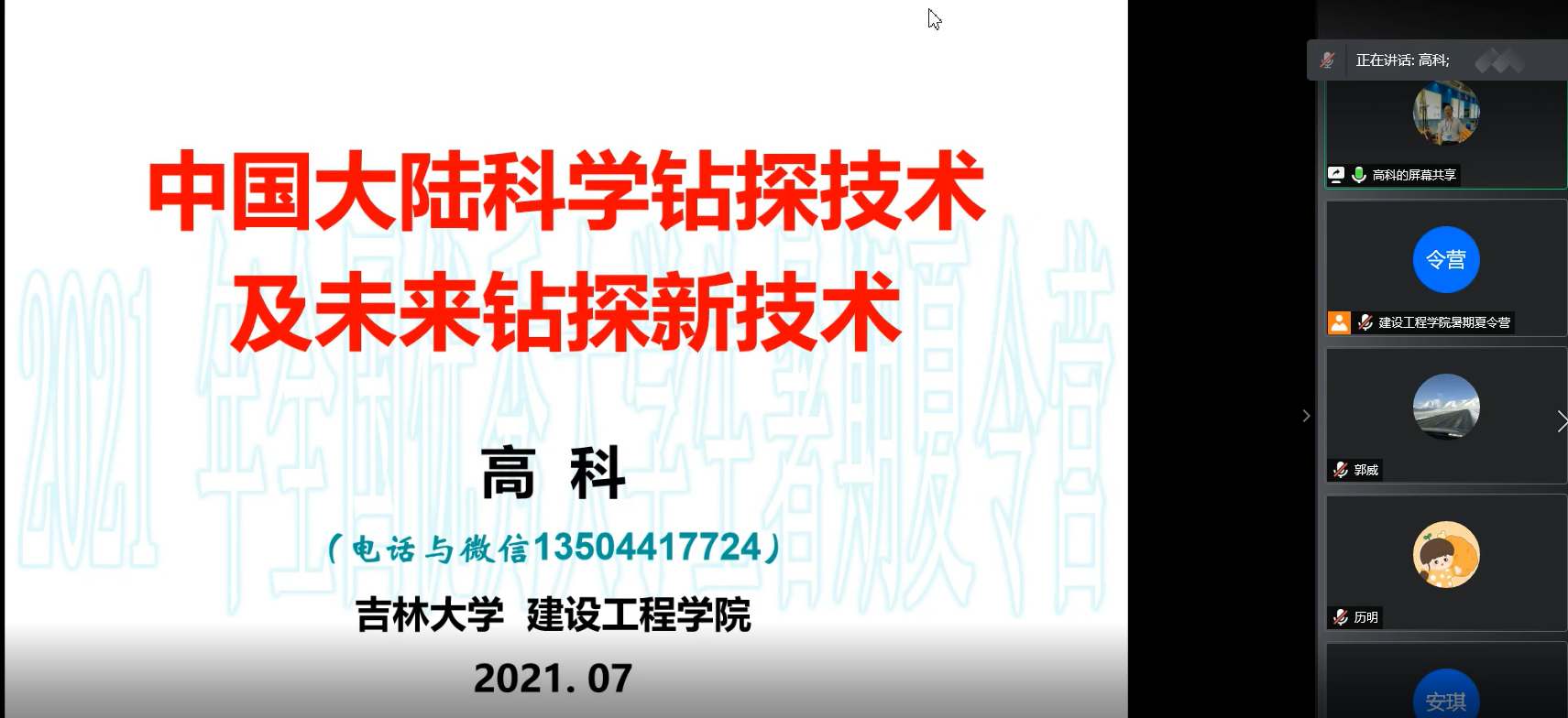 7月10日下午,公司举办地质工程学术论坛、土木工程学术论坛,公司地质工程专业、土木工程专业八位教授分别为营员同学做学术讲座,与营员线上交流。