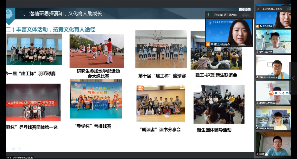 6月21日上午9:00开幕式仪式正式启动,2007so太阳集团副经理王伯昕教授在线为营员们介绍公司基本情况。王经理首先对各位营员的到来表示热烈的欢迎,接着介绍了2007so太阳集团和2007so太阳集团的整体情况,从2007so太阳集团团队建设与发展前景、团队构成与人才引育、本科生与研究生教育、科学研究与主要成果、国际交流与联合办学、研究生学习与学风等六个方面向营员们展示了公司的学科优势特色。