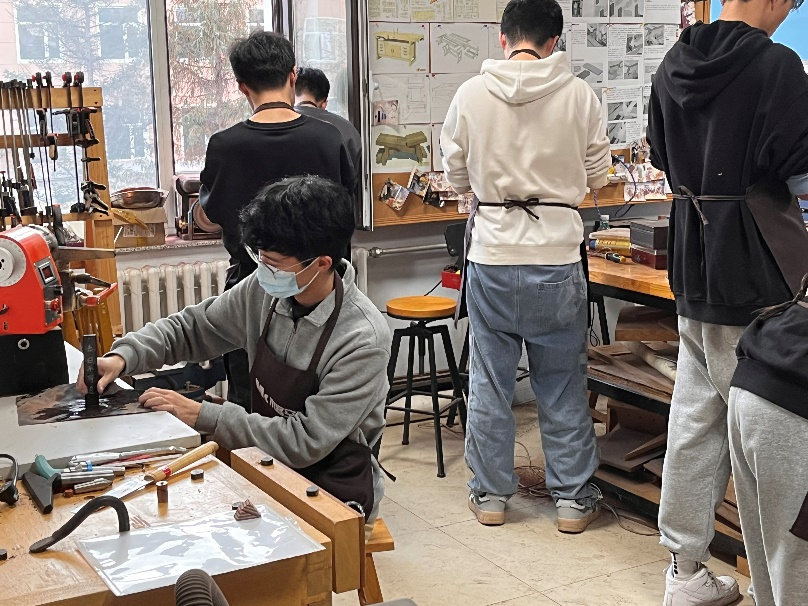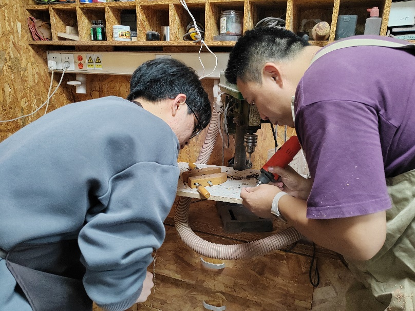 地球科学公司党委副书记兼副经理李阳老师担任木工指导老师。李阳老师为同学们详细介绍了木客空间的发展历史,木艺制品的类别、创作工具以及创作流程。在展示了往届优秀作品后,同学们开始巧妙构思,大胆创作。有了初步设计后,在李阳老师的指导下将创意制成作品。同学们学习木艺的真诚是可以从眼睛里看出来的。室外白雪皑皑,屋内“传道解惑”,木头打磨时的“哧哧”声在各个角落响起。