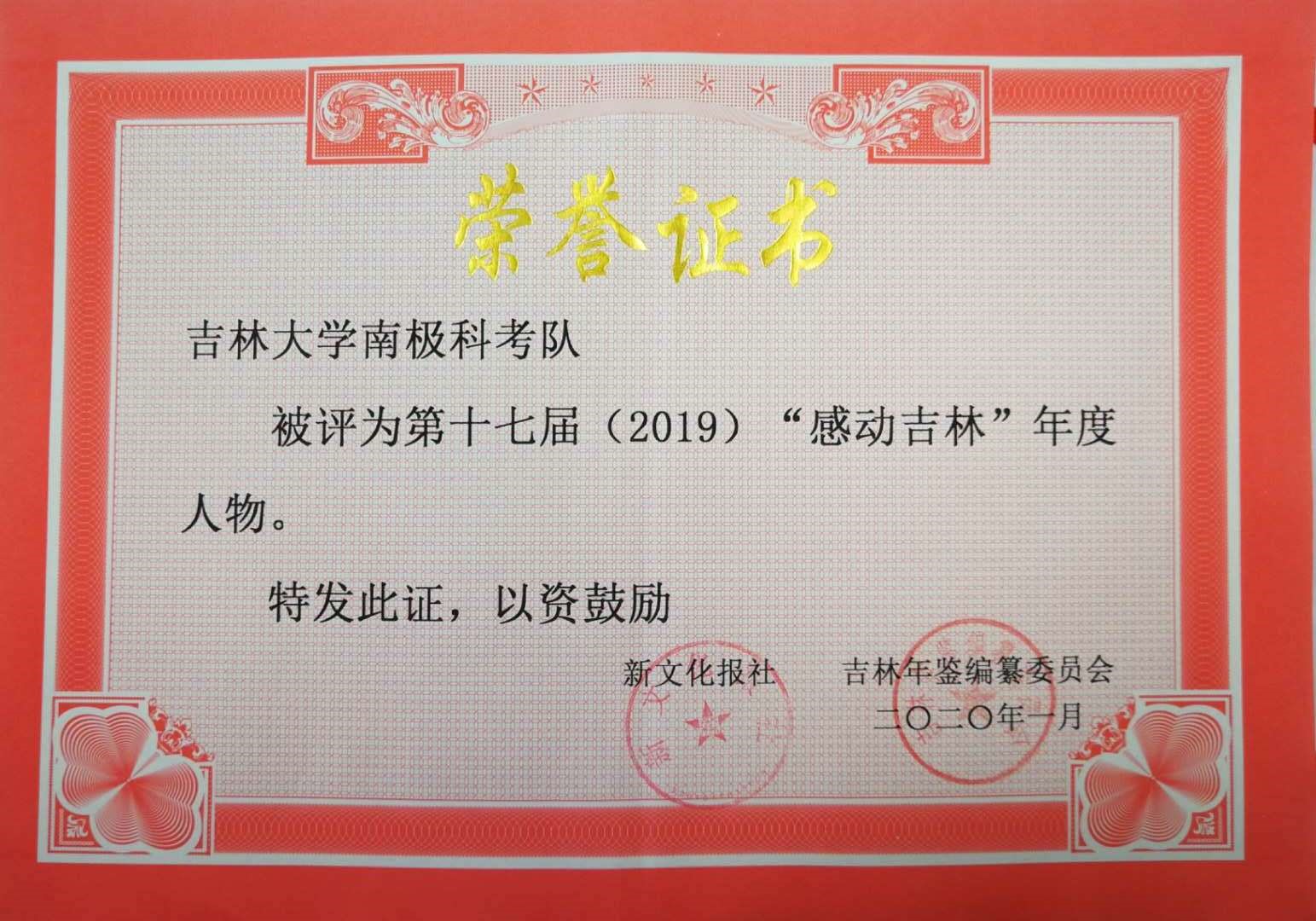 近日,第十七届(2019年度) “感动吉林”十大人物评选活动评选结果揭晓,由公司教师组成的“2007so太阳集团南极科考队”团队凭借在中国南极科学考察活动中的优异表现和所取得的重大突破,以及吃苦耐劳、勇于奉献的敬业精神从众多候选人(团队)中脱颖而出,荣获此项殊荣。