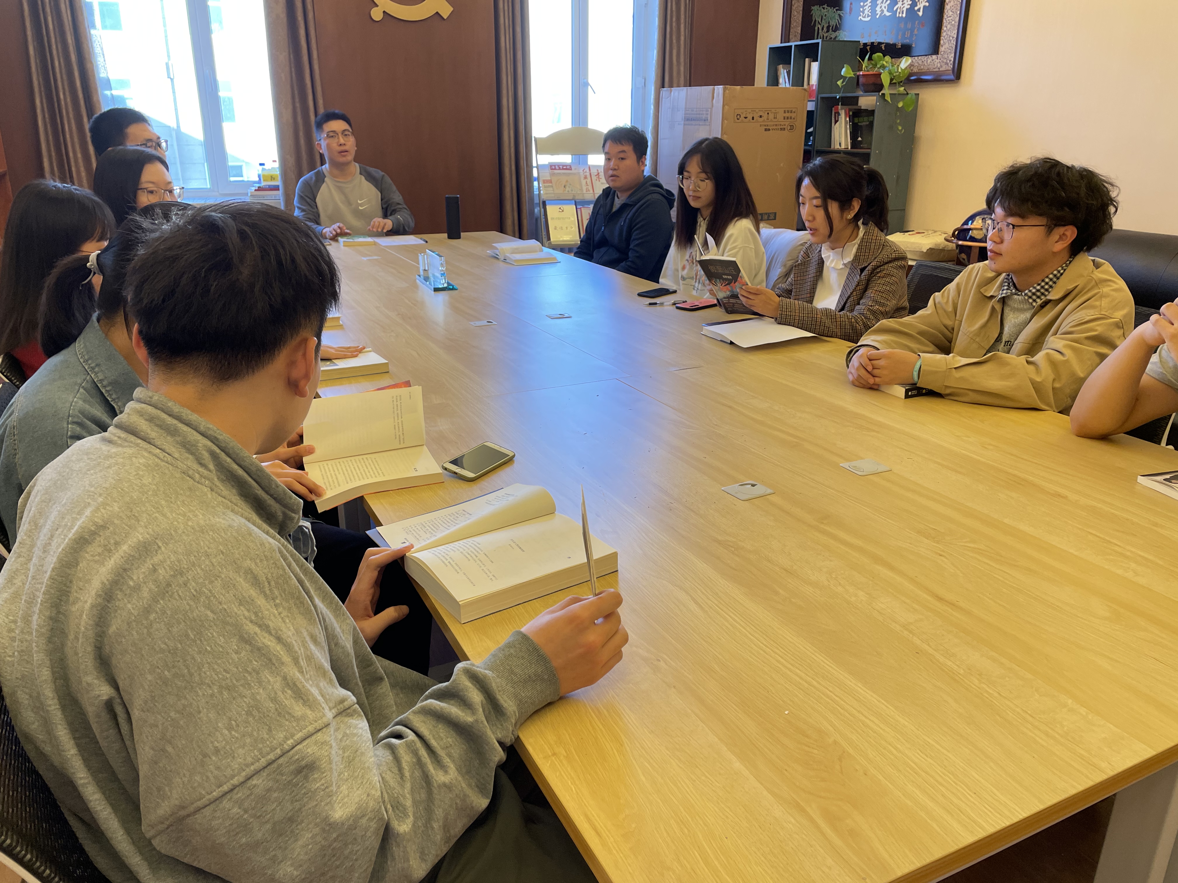 活动开始首先由汤海燕老师向同学们介绍了读书会的目的、意义以及活动安排。读书会采用“一人一读”的形式,2020级研究生班长于忠禹等十余名同学先后朗读了《苏东坡传》、《未来简史》、《追风筝的人》、《假面山庄》等书中的精彩片段并向大家进行了简单的解读。其中,汤老师为大家深情地朗诵了阿紫的《读中国》,并教导大家无论在科研生活还是在未来的工作中,都要保持乐观,坚强,无畏的精神,将青春理想融入到中华民族伟大复兴的中国梦之中。大家从历史中,探寻消失已久的人性和奥秘;从散文中体会生活的点滴感悟;从小说中感受跌宕起伏的动人情节。正如习近平总书记所说,“读优秀文化典籍,是一种以一当十、含金量高的文化阅读”,接下来同学们结合自己在课堂、生活与实践中的经历,从历史的经验和自身的思想提升等方面分享了自己的感悟。