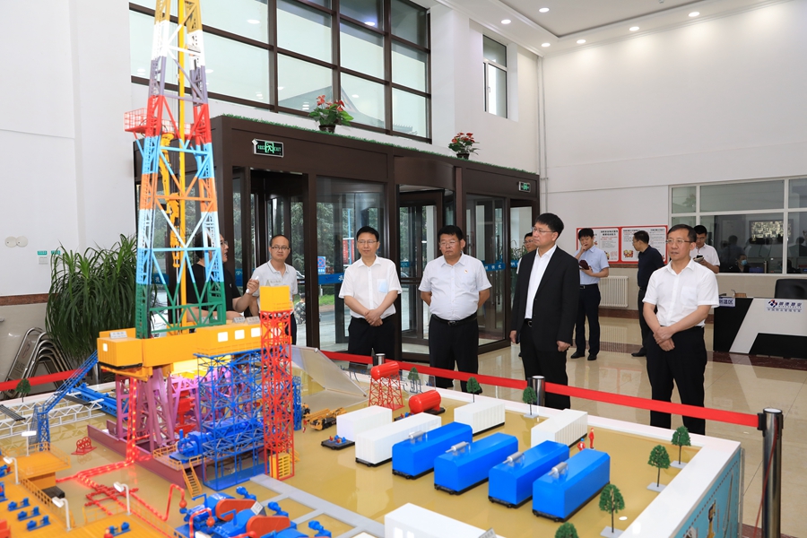 张希一行参观了位于朝阳校区钻采楼的“地壳一号”深部大陆科学钻探钻机模型,听取了项目研制过程及其应用等方面的介绍,详细询问了国际同类研究进展情况和相关专业人才引进情况。在公司实验大厅及扫描电子显微镜实验室,张希逐一了解各类实验设备的应用场景及关键核心部件的自主研发工作。
