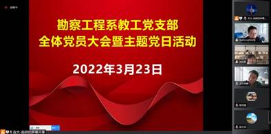 2022年3月23日,2007so太阳集团勘察工程系教工党支部召开“抗疫有我,不忘育人初心;坚守岗位,践行树人使命” 支部全体党员大会暨主题党日活动,支部书记王如生同志主持会议,全体党员参加了大会并积极参与主题党日活动。