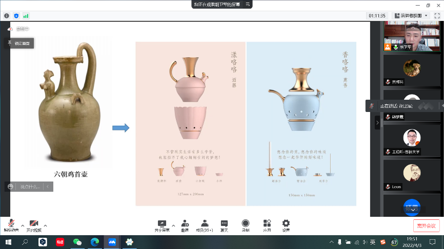 胡老师以一幅幅生动的艺术照片,带领听众欣赏各具特色的文创产品,从亮洁秀丽的盘瓶杯枕瓷器到淡雅的花鸟风水画,从色彩、纹样、造型、结构、材质、肌理和工艺元素的提取,到以功能为主、突出趣味、融入情景性为目的设计,让收藏在博物馆里的文物、陈列在广阔大地上的遗产、书写在古籍里的文字在听众心中活了起来。文创的意蕴美不断弥漫,不同形式美的展现开拓了师生眼界,也启发许多奇思妙想。互动环节,公司岩土工程系于庆博与胡教授进行了关于如何展现吉大美的讨论,勘察工程系马银龙老师也向胡教授请教了钻头造型创意美的探究方法。