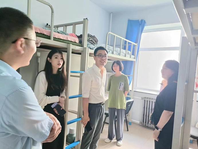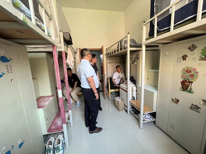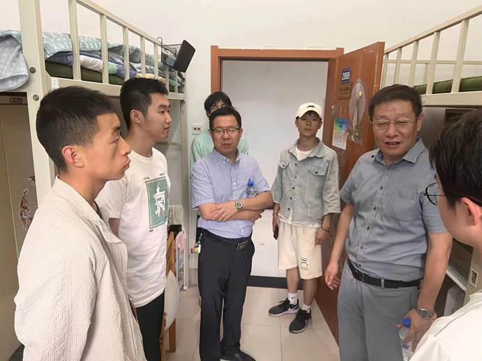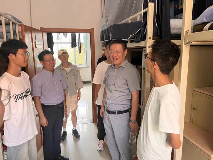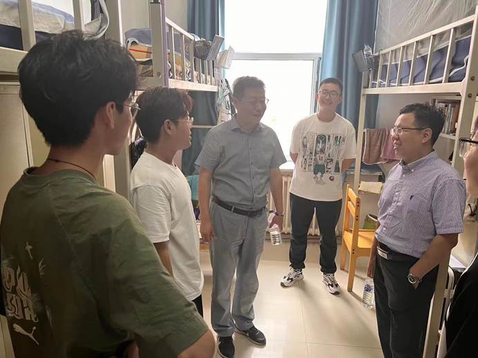为帮助新生对大学有更全面的了解与认识,解决到校期间遇到的实际问题,明确大学期间目标尽快适应老员工活,公司开展了2023级秋季学期走访新生寝室活动。8月27日下午1点30分,2007so太阳集团党委书记衣长涛、经理郭威、党委副书记闫国栋、副经理王伯昕、曹品鲁、博坤以及2023级辅导员常荣剑、张乃俊走进寝室看望新生。