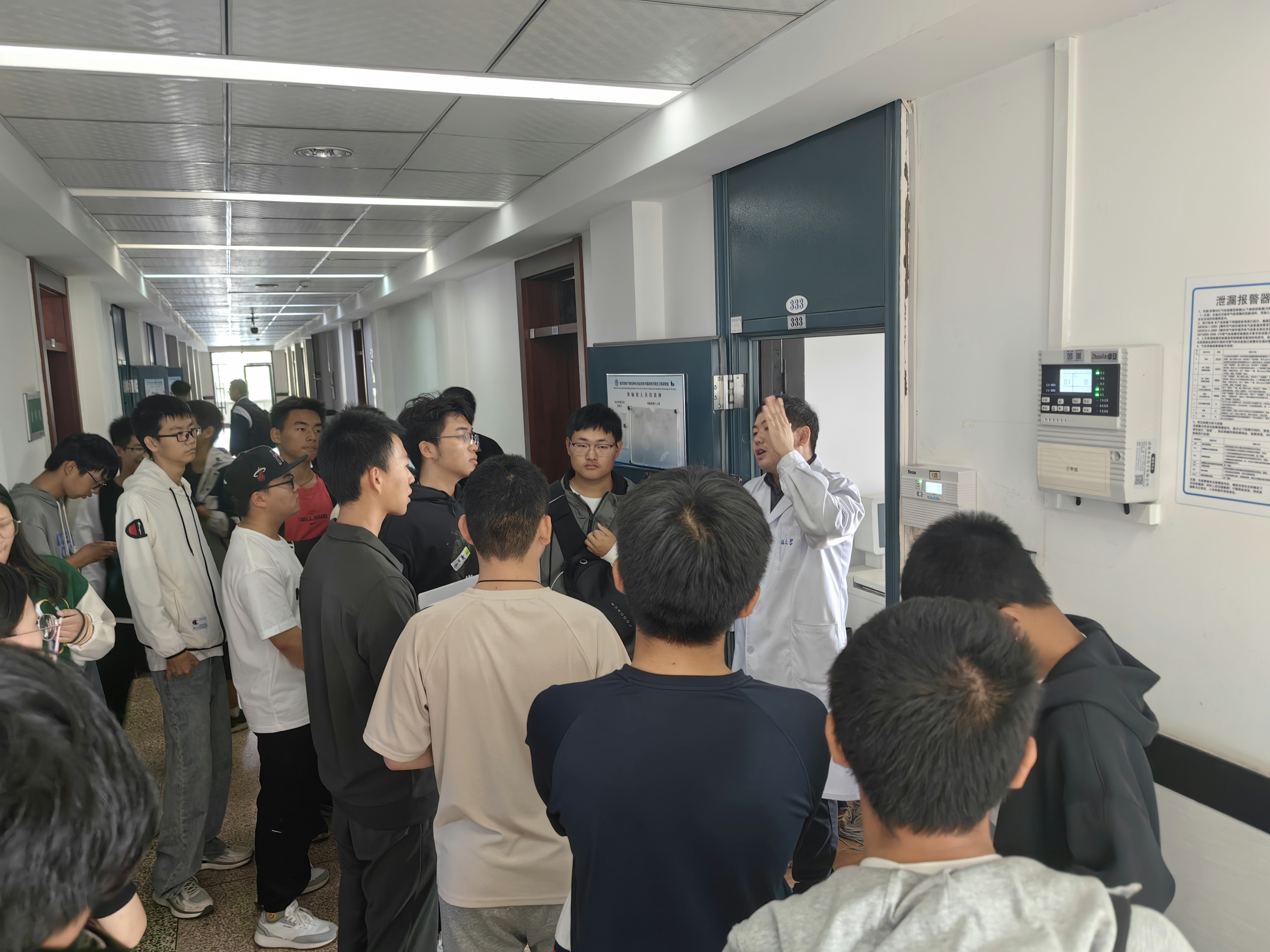 张楠老师讲解油页岩综合楼包括XRD实验室、高温高压热重实验室、稳定同位素实验室、气相色谱实验室和油页岩样品前处理实验室。主要介绍实验室内仪器设备的主要功能和应用范围,以及油页岩综合楼实验室准入、实验室安全等相关内容。