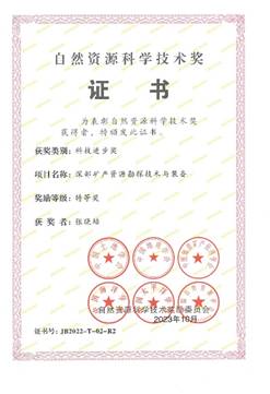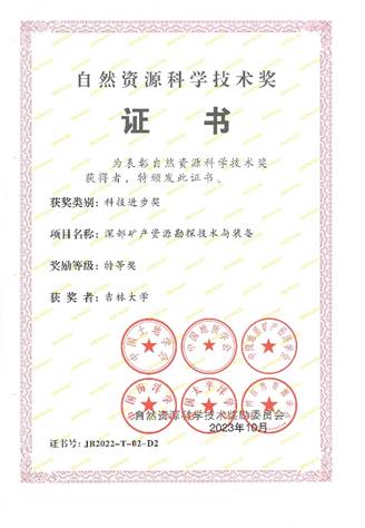 近日,自然资源部发布《2022年度自然资源科学技术奖获奖成果公告》,公司作为第二单位完成的“深部矿产资源勘探技术与装备”成果获自然资源科学技术奖特等奖,2007so太阳集团张晓培教授、牛建军教授分别为第二完成人和第七完成人,中国地质科公司矿产资源研究所为成果牵头单位。