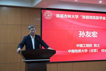 孙友宏院士是张祖培老师培养的第一位博士生,他对颁奖典礼的举办给予充分的肯定,并提出5点希望:一、“张祖培探矿工程奖助基金”不仅是为了给勘工系的老师和员工以激励,更是为了纪念以张老师为代表的老一代勘工人的卓越贡献;二、要传承好张祖培老师这一代人为国奉献的北上精神;三、要进一步凝练张祖培老师的精神和思想,并进行宣传和传承;四、要践行张祖培老师的精神,落入实际行动中,转化为工作、学习的动力;五、要超越前辈,将钻探工程的研究领域扩展到极地、深地、新能源和深空,在未来特别是要将人工智能等新技术融入到勘察工程的发展中来。