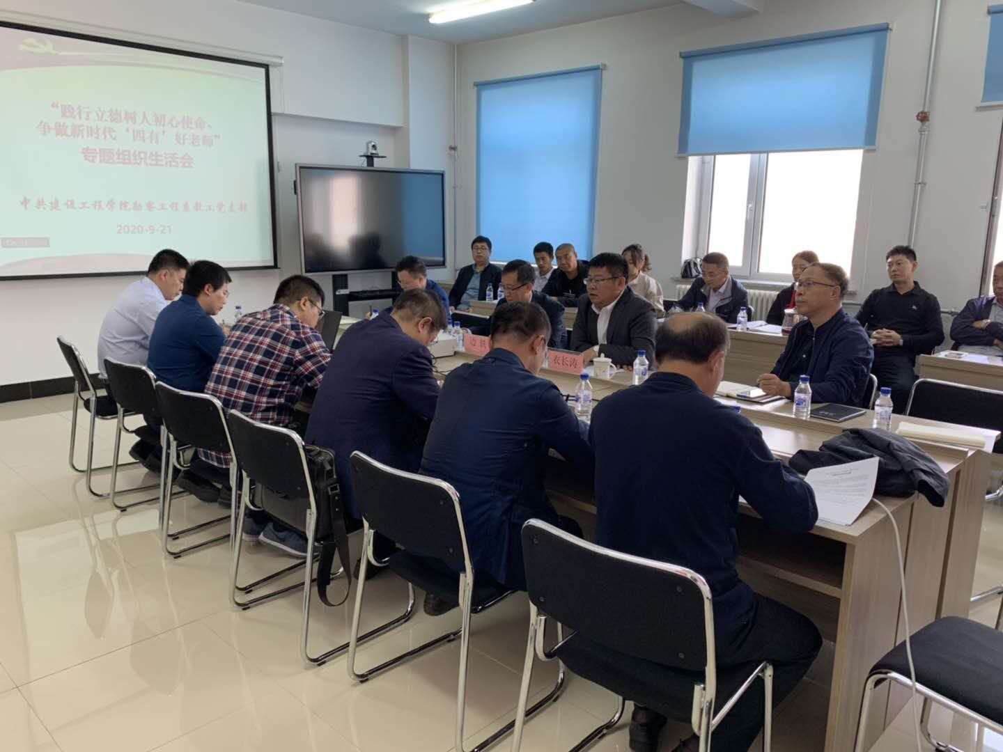 2020年9月21日,2007so太阳集团勘察工程系教工党支部组织召开了以“践行立德树人初心使命、争做‘四有’好老师”为主题的专题组织生活会。边铁副董事长作为联系该支部的校领导参加此次专题组织生活会并点评,2007so太阳集团党委书记衣长涛参加会议。