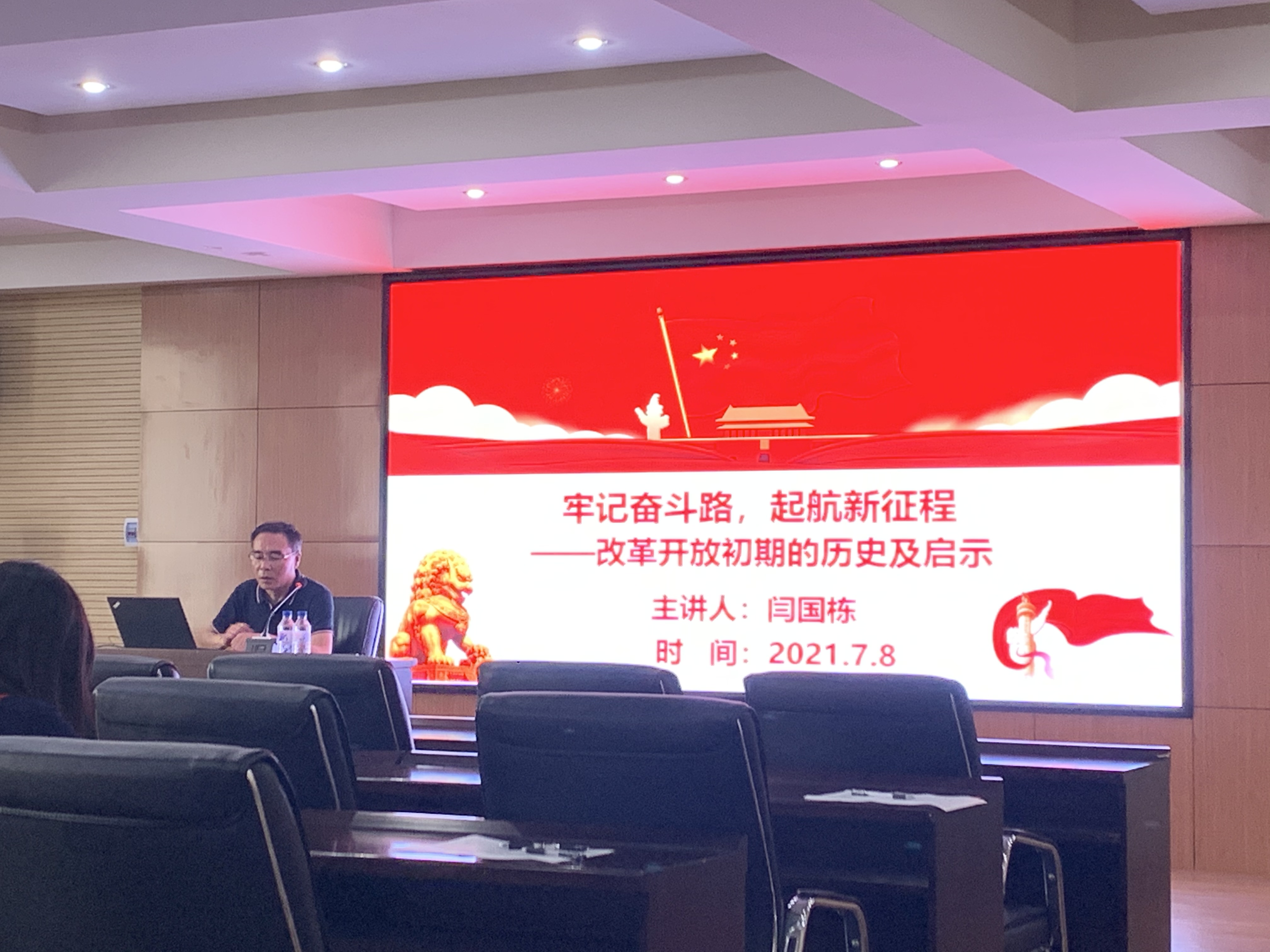 党委副书记闫国栋将改革开放初期作为主要讲授内容。在这个时期,世界经济正快速发展,科技进步日新月异,党和国家如何从危难中重新奋起,人民始终怀揣着热切期待。在中国向何处去的重大历史关头,实行改革开放这一历史性决策,实现了新中国成立以来党的历史上具有深远意义的伟大转折,开启了改革开放和社会主义现代化建设新时期。