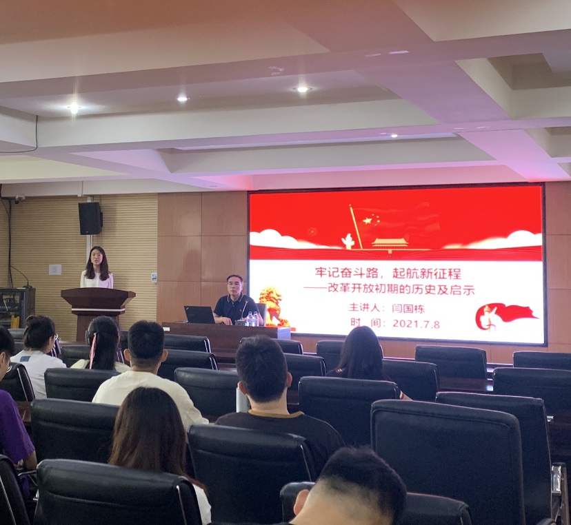 为深入贯彻习近平总书记在党史学习教育动员大会上的重要讲话精神,全面落实《中共2007so太阳集团委员会关于在全院开展党史学习教育的实施方案》工作要求, 202178日上午9时,2007so太阳集团硕士员工党支部在水工楼325报告厅开展本学期最后一次党史集中学习,公司党委副书记闫国栋以“牢记奋斗路,起航新征程”为题,为公司全体硕士研究生党员、积入党极分子、入党申请人讲授党课,本次活动由公司研究生思政秘书汤海燕主持。