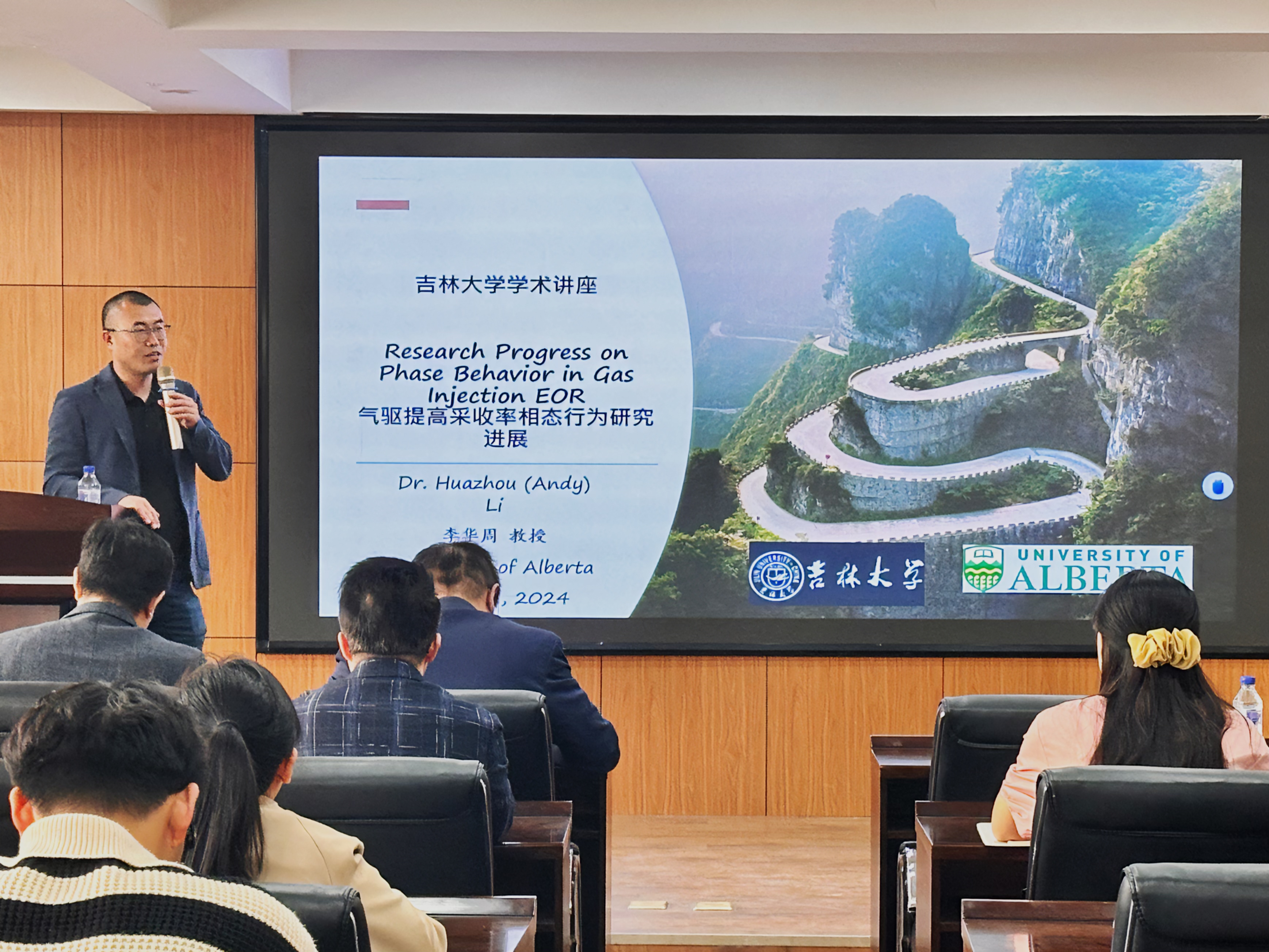 讲座聚焦于气驱技术在提升油田采收率方面的最新研究成果,特别是在相态行为方面的探索与创新。气驱技术作为一种先进的油田开发手段,对于提高油田采收率、促进能源可持续发展具有重要意义。讲座由公司副经理曹品鲁教授主持,公司经理郭威教授,公司勘察工程系、石油工程系多位教师及院内研究生们参与了本场讲座。